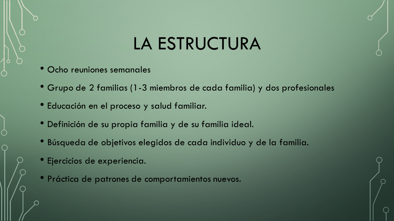 Las familias reciben tareas a ejecutar en casa, como practicar nuevos comportamientos o escribir un inventario de sus emociones y reacciones en intercambio con otros miembros de la familia.