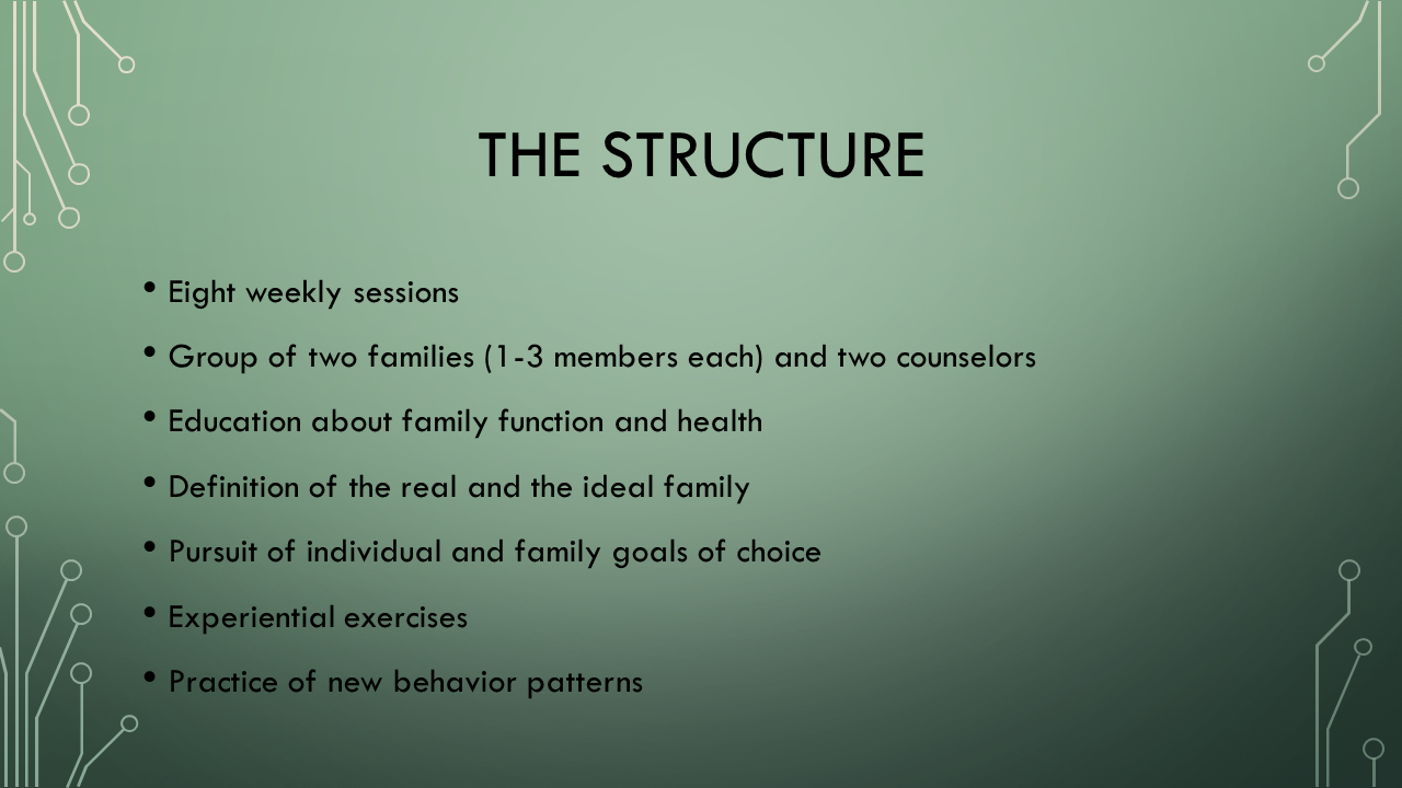 An educational component addressing family health is part of each session and exercises are built in as needed.